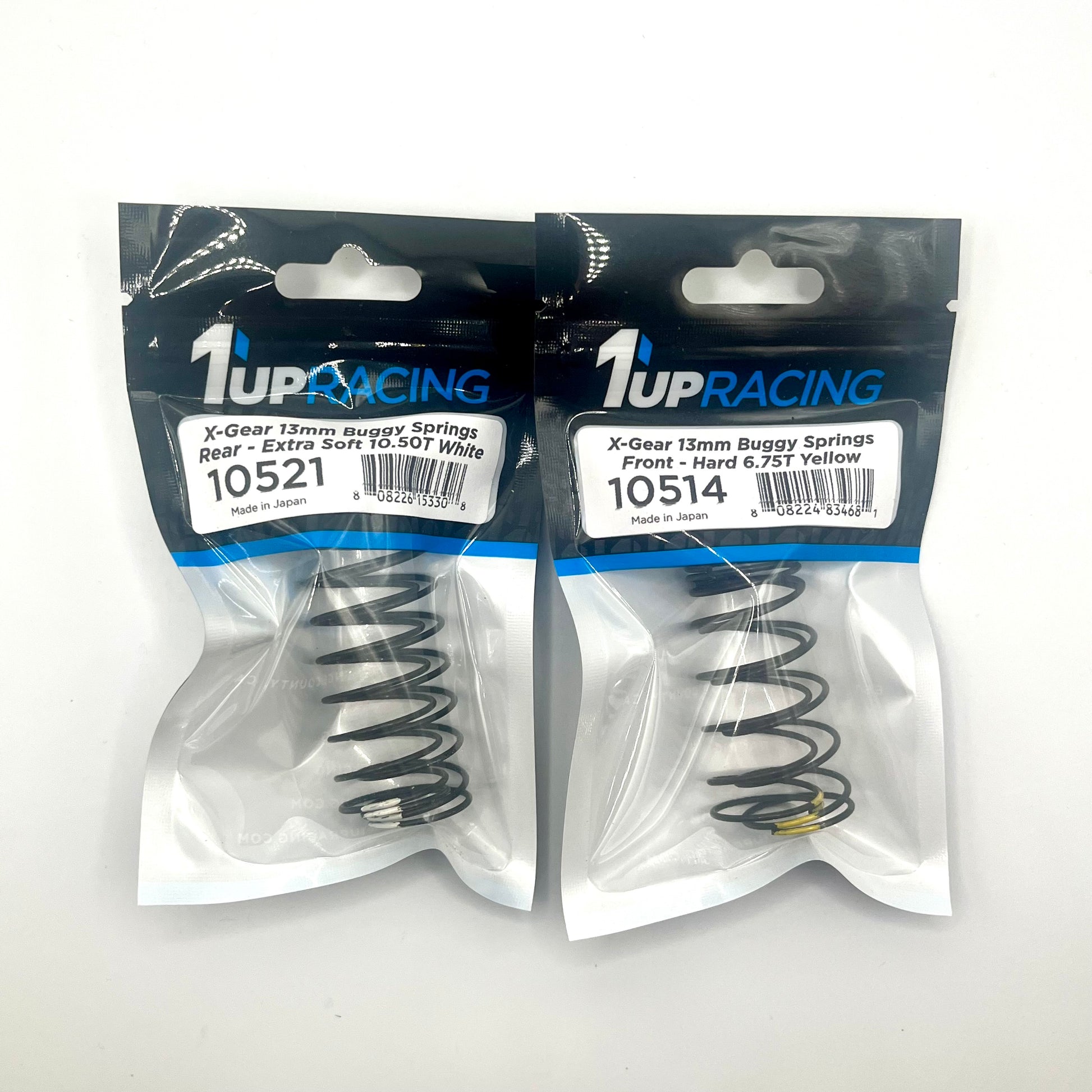 What can you expect when running 1up Racing X-Gear 13mm Springs? Our Factory Drivers say their cars feel more "in the track" meaning overall improved grip and response. In addition to the extra grip, you can expect improved handling over bumpy areas, and a car that's more predictable over jumps and smoother on the landings.