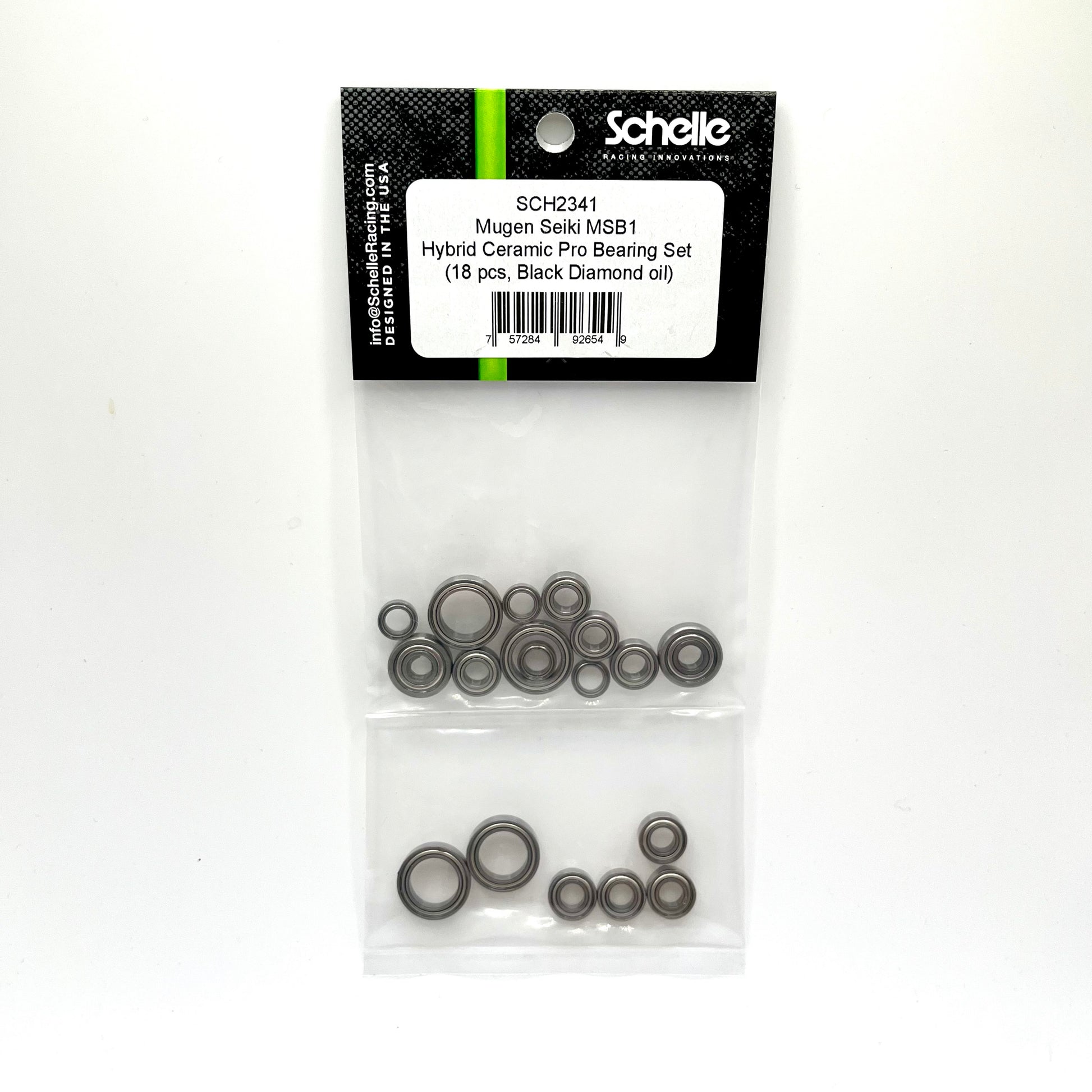Set of 18 pcs high-performance racing bearings (6 Ceramic and 12 Onyx Pro) with Black Diamond Oil for a Team Associated Mugen MSB1 series buggy.