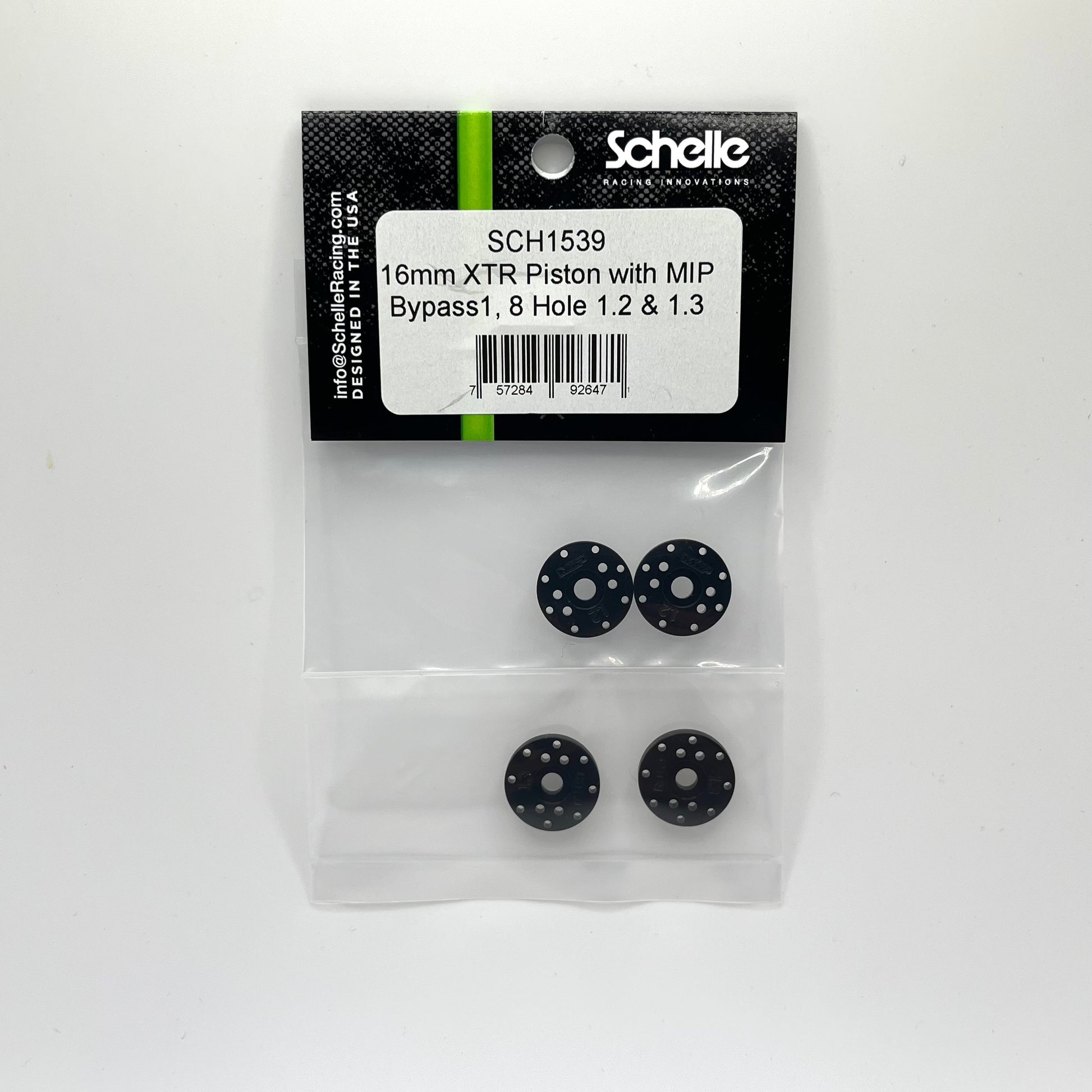 The Schelle 16mm XTR piston lineup was developed in 2024 with Kurt Wenger's Schelle custom valving utilizing the proven MIP Bypass1 platform. The pistons, made in Covina, CA at MIP, are a custom spec design that is not available anywhere else. Piston O.D. and 2.5mm thickness is based on the "H" Hi-Flow profile. The unique Bypass1 system was the perfect way to add extra tuning to the rebound stroke of the shock and improve jumping, prevent wheel hop, all while keeping the vehicles smooth and predictable in turns. Racers can use MIP's patented Bypass1 system with colored valves to fine tune the rebound speed engineered to work in a wide range of conditions and take full advantage over the Xtra Tune-able Rebound (XTR!) of the system.