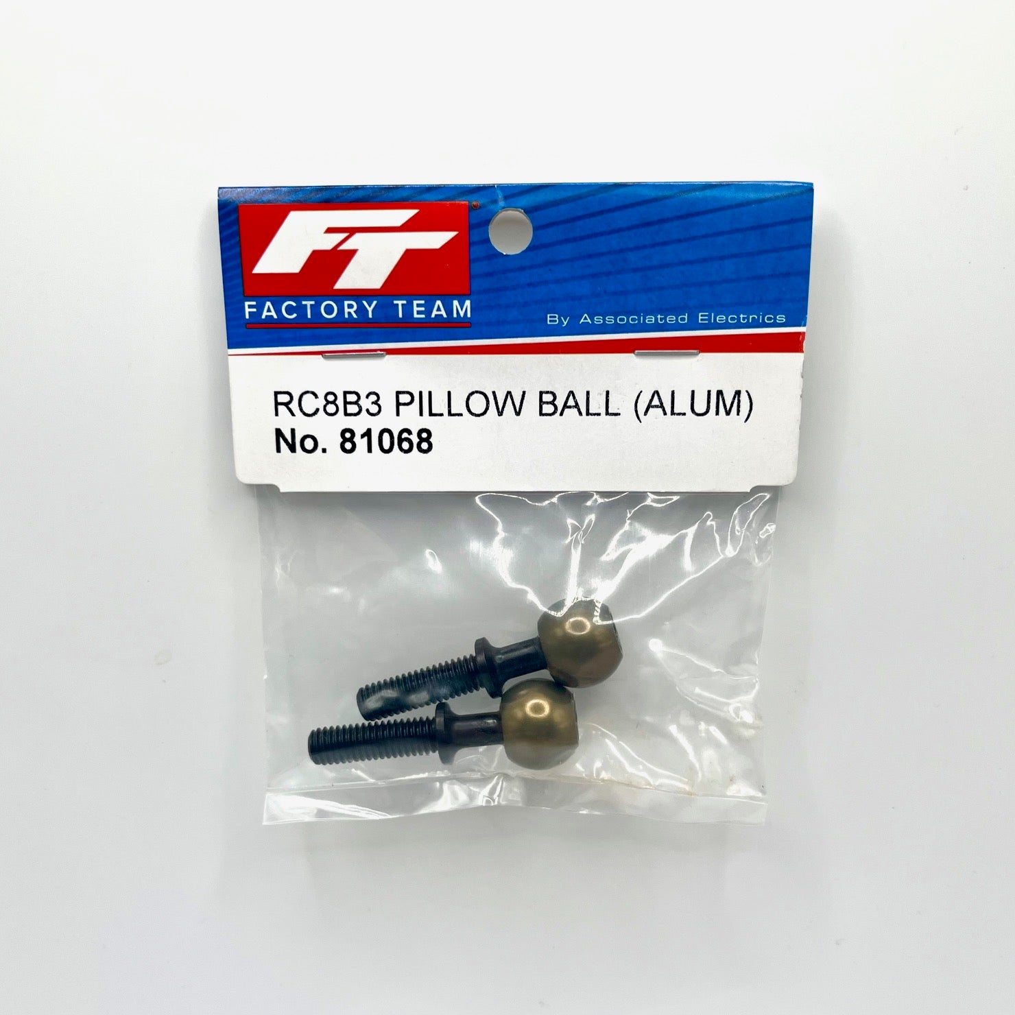 Team Associated RC8B3 to RC8B4.1 Factory Team Aluminum Pillow Balls are an optional upgrade for the standard steel pillow balls included buggy and truck kits. Aluminum pillow balls reduce un-sprung mass in the front steering block assembly, resulting in a more forgiving front end.