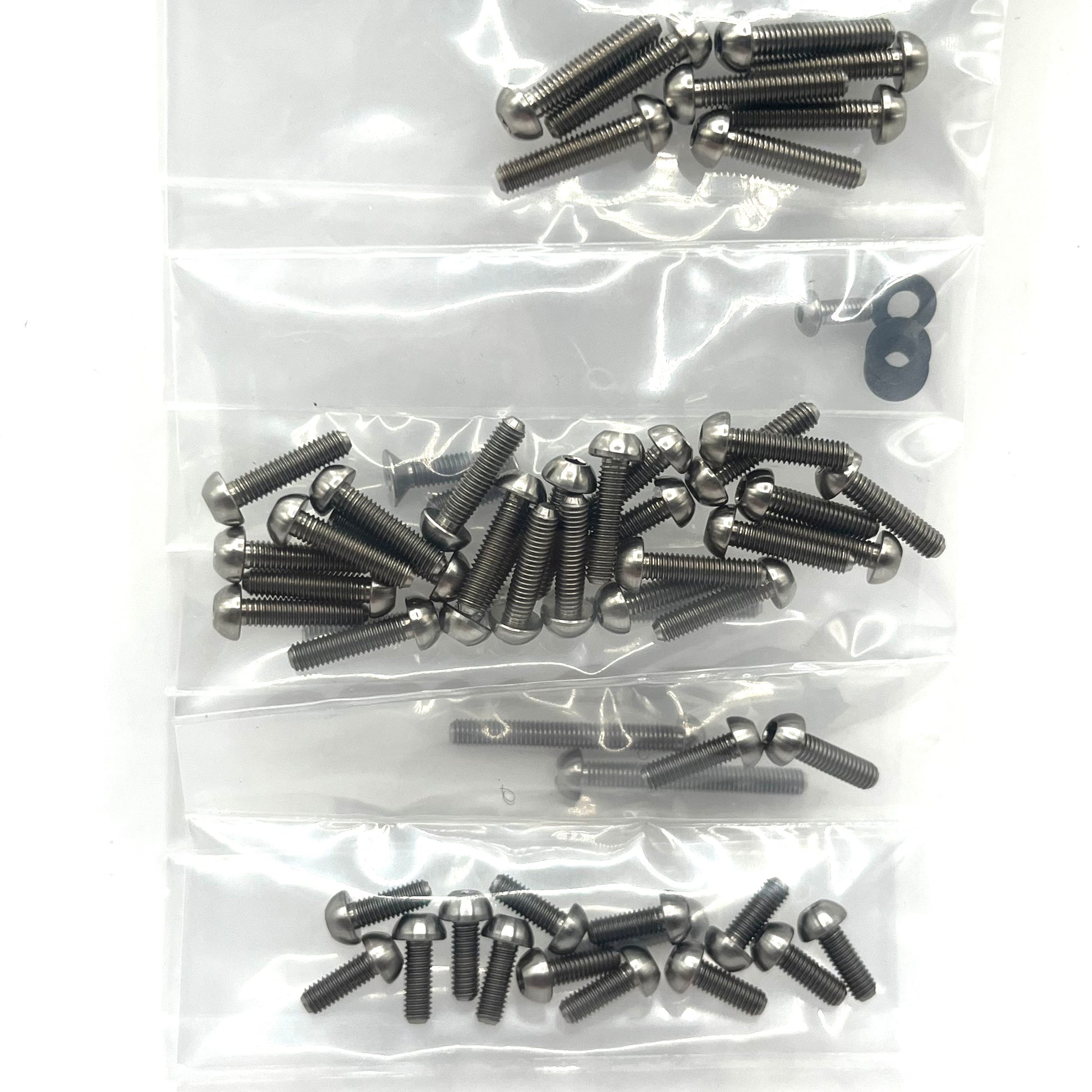 2. 56 pcs. set comes bagged by length (chassis plate screws not included).