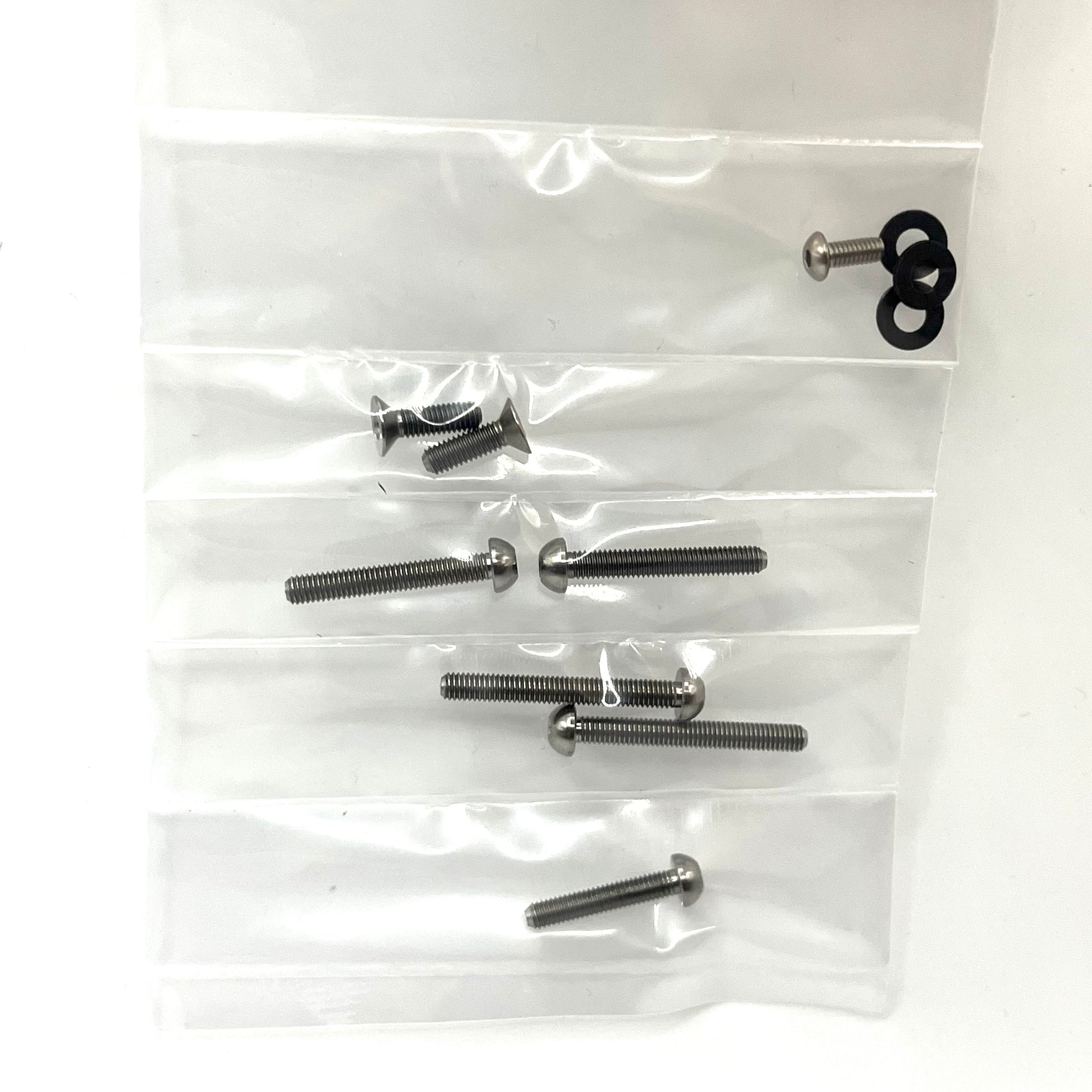 1. Premium Grade 5 Titanium Alloy screws with bright machined finish. Won't rust like steel screws!